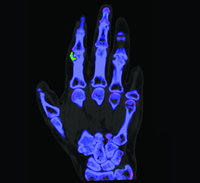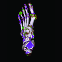 In patients with a confirmed diagnosis of gout, DECT technology can be used to qualify the amount of urate crystal deposition. DECT's ability to measure overall or focused tophus burden with high accuracy makes it an ideal tool to document response to therapy in daily practive or in clinical trials.