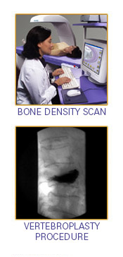A bone density scan, also known as a dual-energy x-ray absorptiometry (DEXA), measures bone mineral density in the lumbar spine and hip to detect the presence of osteoporosis. Osteoporosis is the leading cause of vertebral fractures. A vertebral compression fracture occurs when a bone in the spine collapses from disease process or injury. These fractures are painful and can interfere with daily activity.